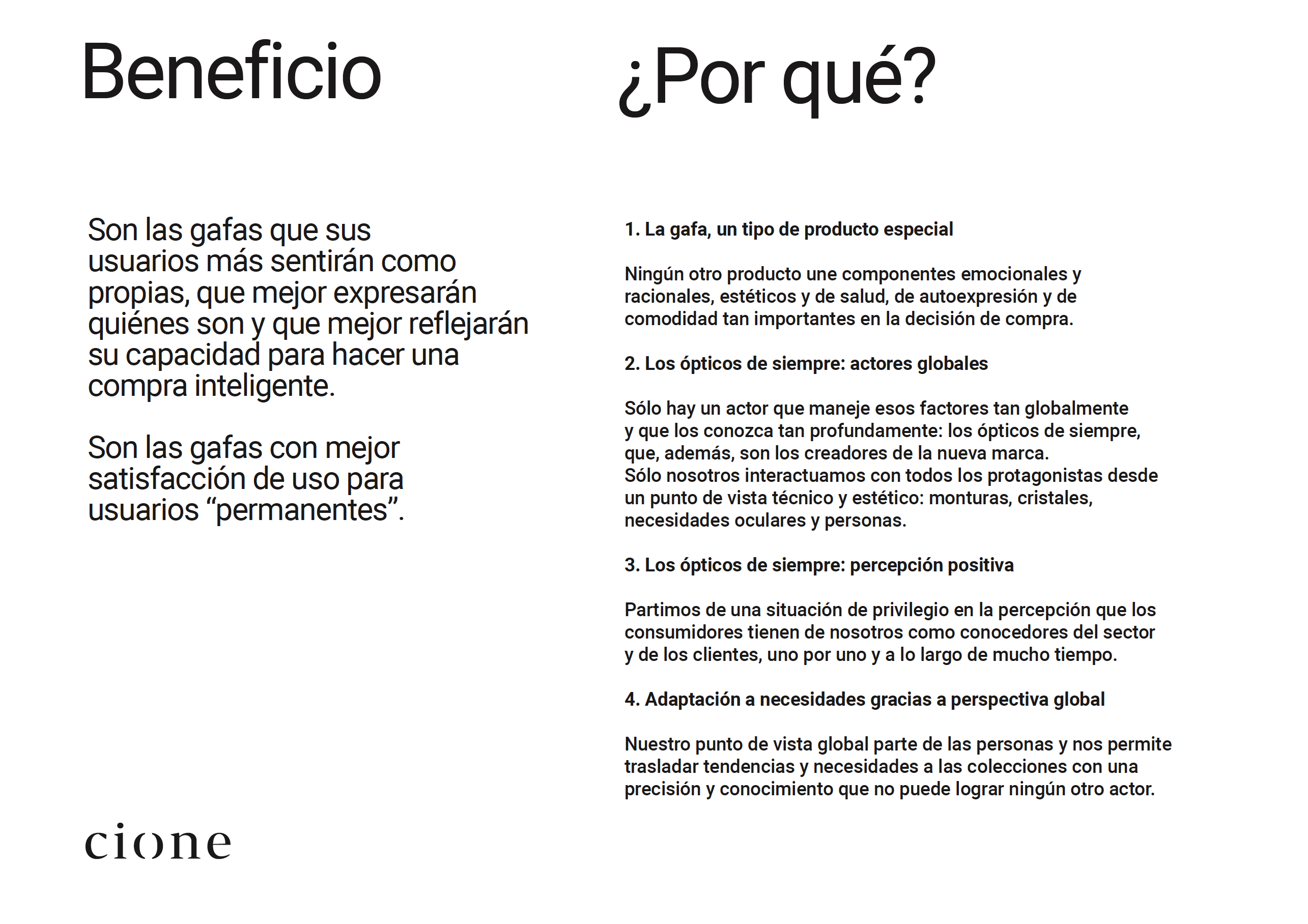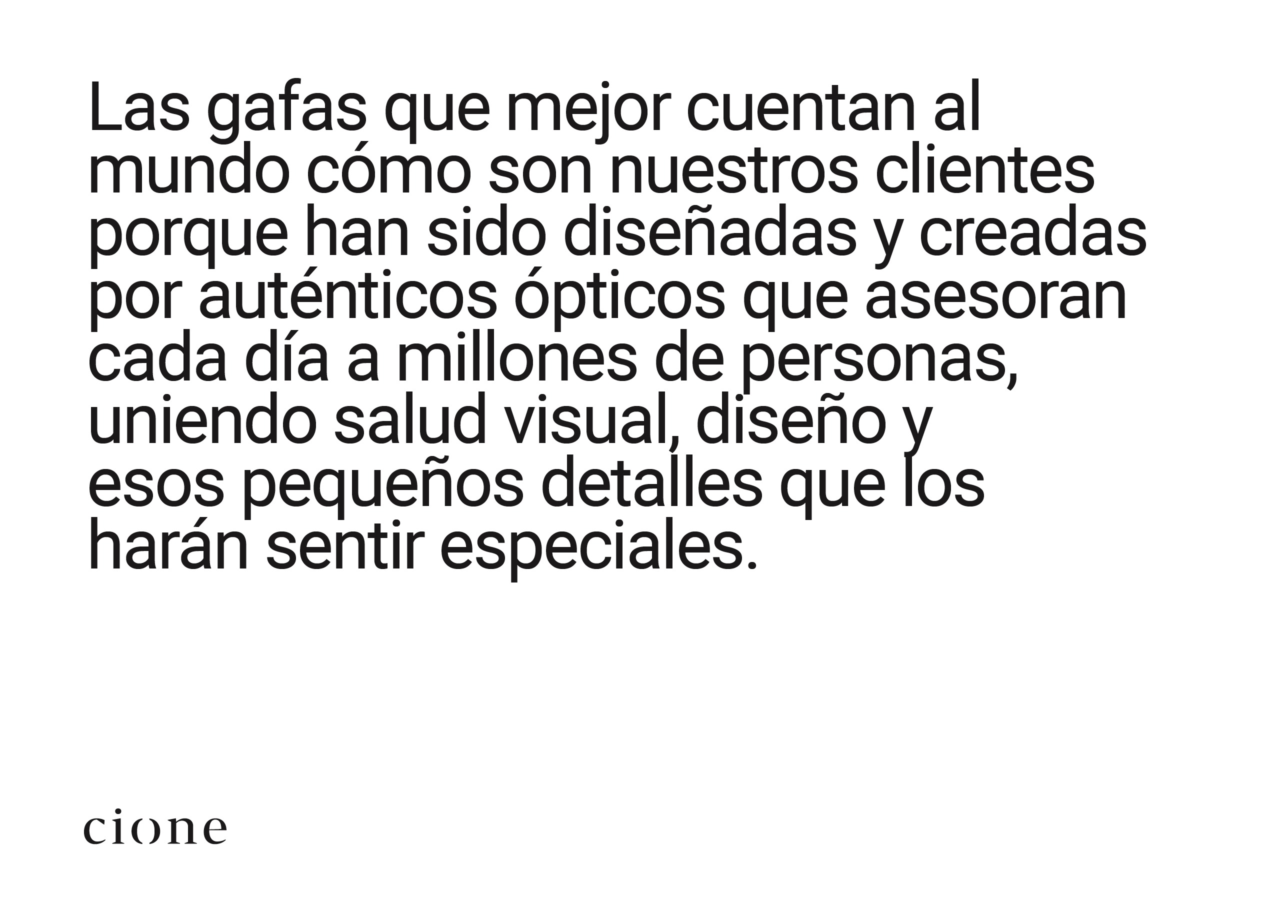 This way, it responded consitently to the strategic brand platform that defined Cione as the glasses that best tell the world about our clients’s personality and lives.